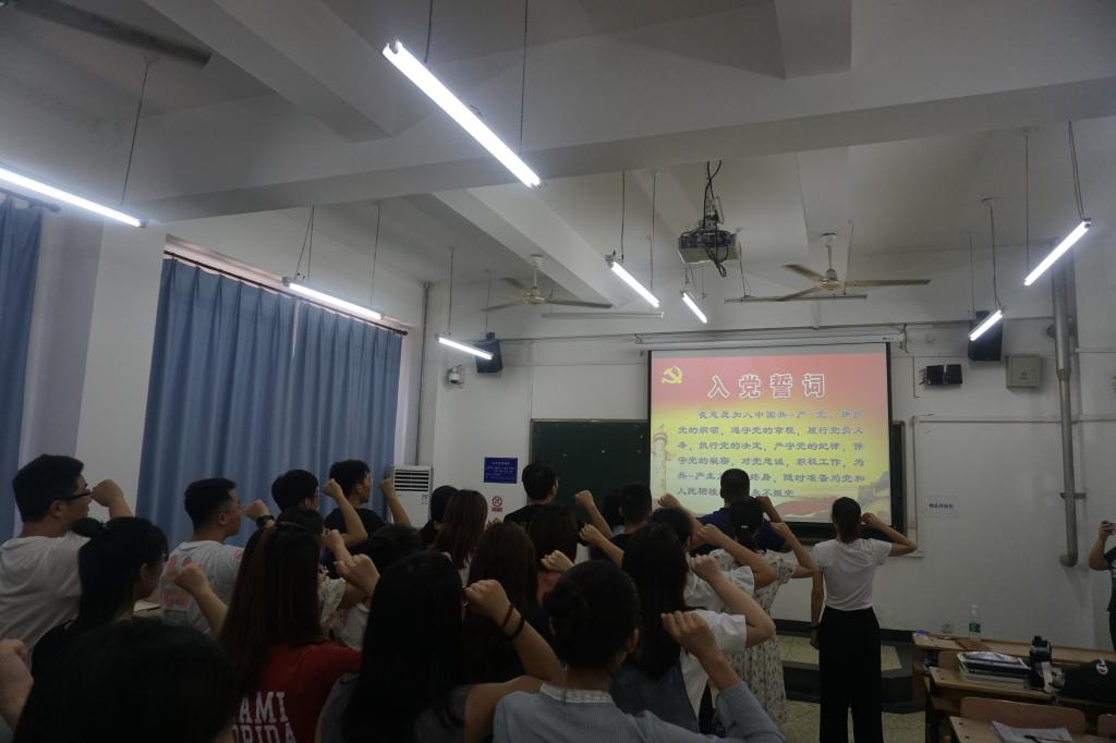大会第一项议程,刘益星向大家强调要牢记党的宗旨,加强对党的认识,肩负青年责任,并详细讲述了党员的政治标准。作为一名党员,应在学习生活中积极进取,发挥党员模范作用,做一名有理想、有觉悟、有干劲的青年党员。大会第二项议程,由高会颖领誓进行了入党宣誓。