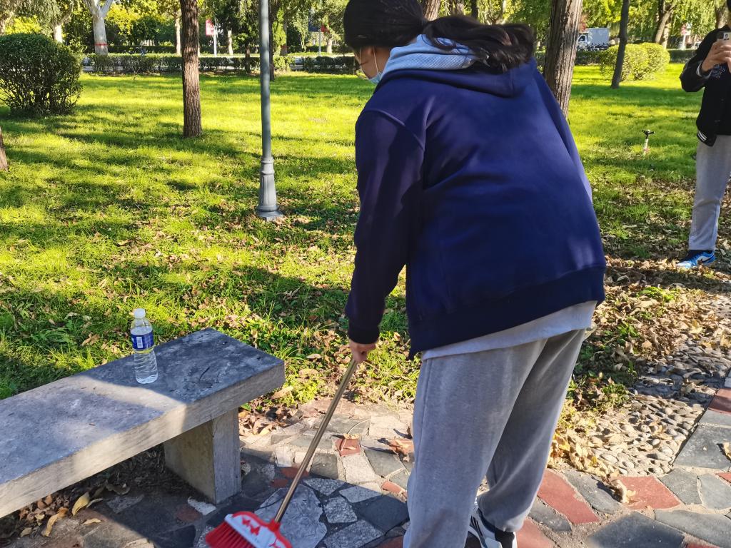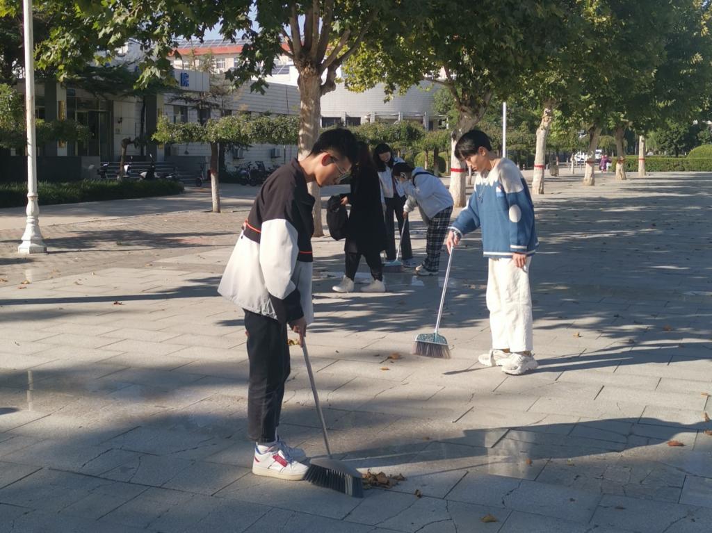 接下来,全体员工党员志愿者们按照区域划分小组,以小组为单位对第一教学楼前广场及附近环境进行认真、细致的打扫。