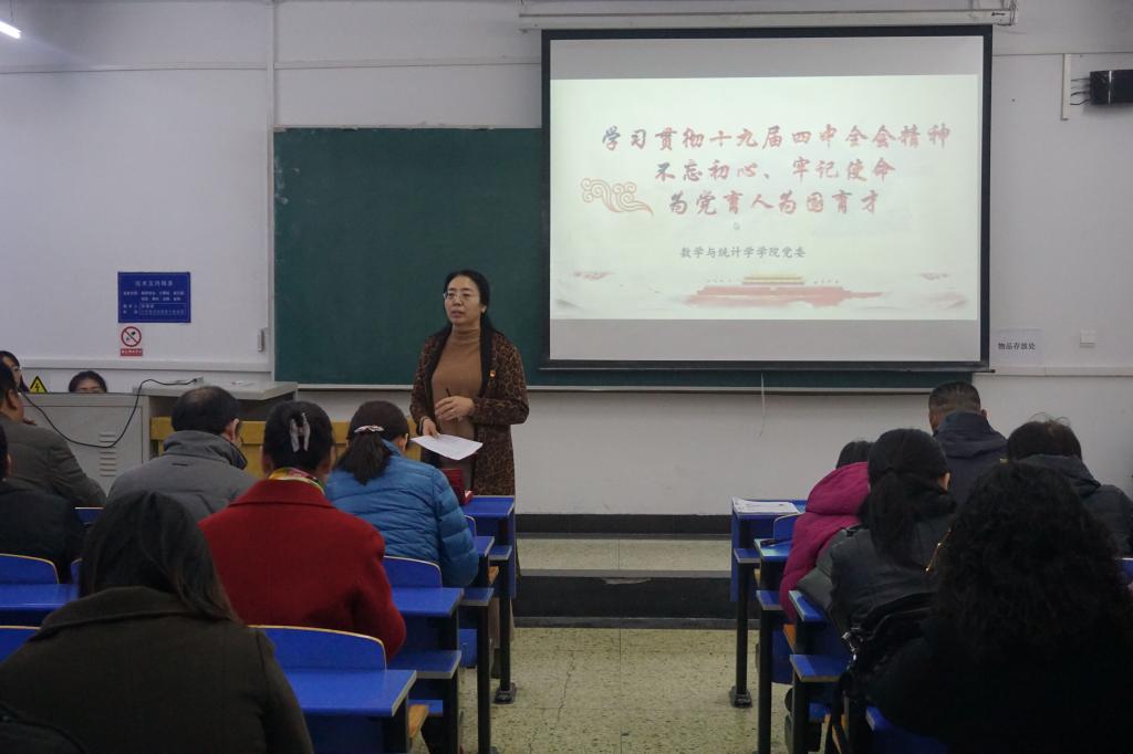 12月2日下午,数学与统计学公司党委根据“不忘初心,牢记使命”主题教育要求,在B102教室为教工党员举办了“集体政治生日”主题活动。公司院领导、全院教职工参加。活动由党委书记赵春果主持。