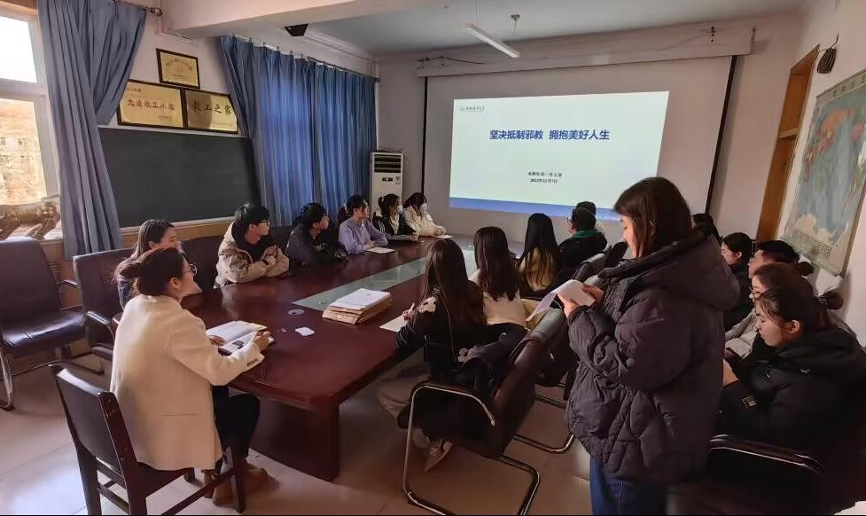 【本科生第一党支部】12月7日,本科生第一党支部开展了“坚决抵制邪教 拥抱美好生活“主题党日活动。支部书记高会颖从邪教的种类、基本特征和如何识别邪教、如何抵御邪教等方面进行了详细讲解,进一步增强防范意识和能力。