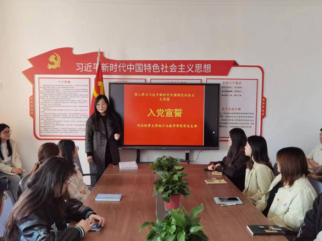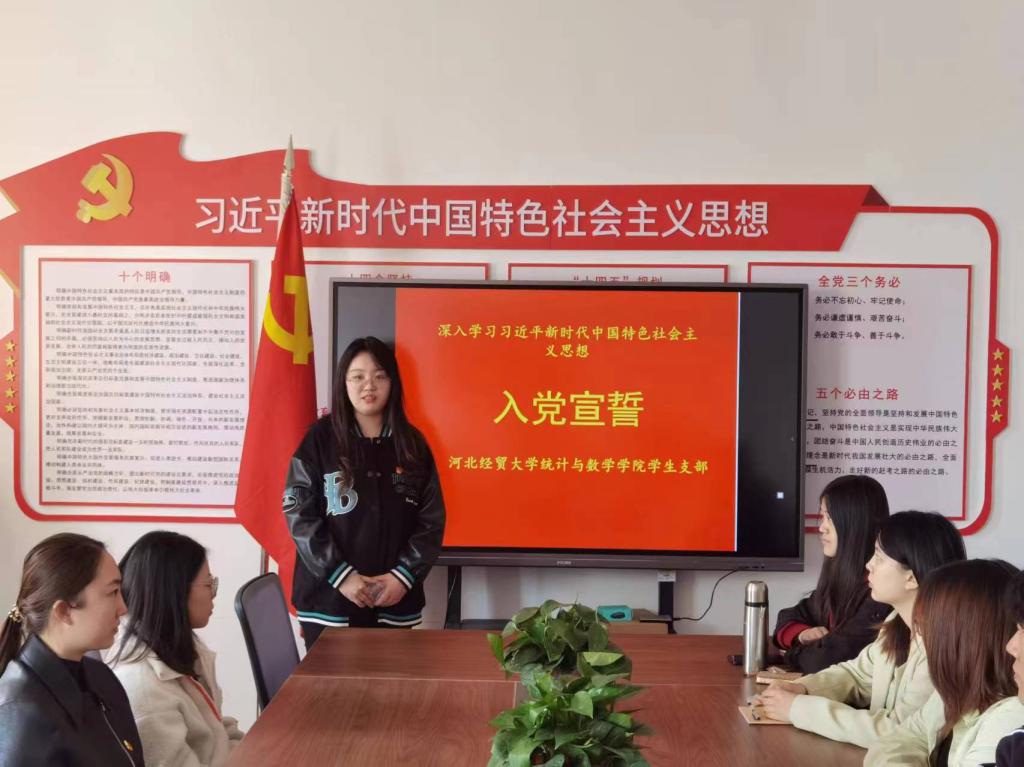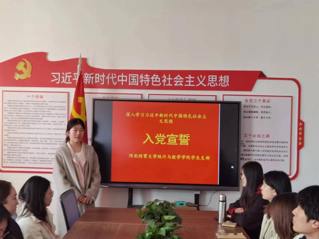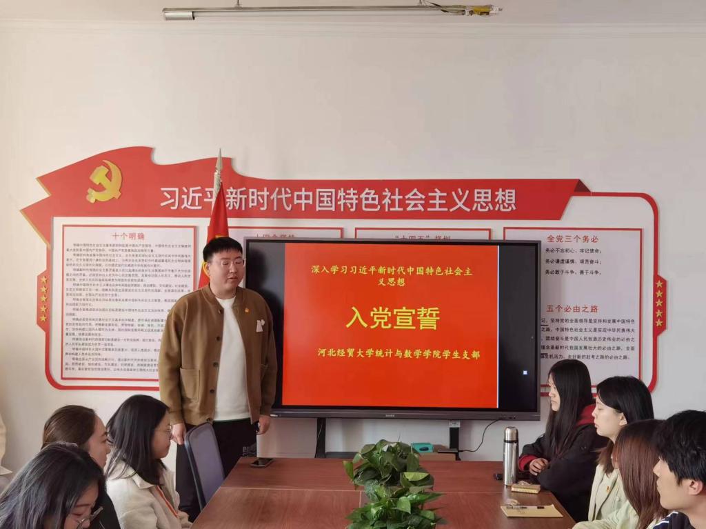 新党员代表魏辰昊、张宏玥、郭瑞同学进行发言。他们表示,能够成为一名共产党员,是荣誉更是责任。在今后的学习工作中,将始终坚定理想信念,严守党的纪律,发挥党员先锋模范作用,为实现全面建设社会主义现代化国家的宏伟目标,为实现中华民族伟大复兴的中国梦贡献自己的力量。