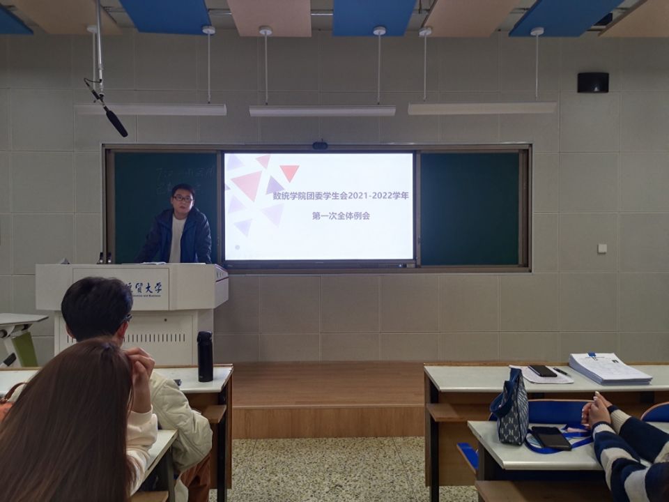 10月17日晚七点,数学与统计学公司于北三教B308召开团委员工会本学期第一次全体会议。团委书记王洋老师出席,员工会执行主席韩家昊主持,员工会全体成员参加。