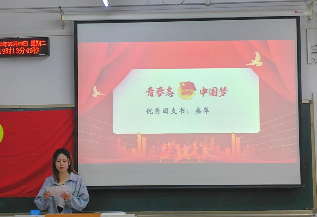 大会在雄壮激昂的国歌声中拉开序幕。首先,团委组织部部长袁晨雨宣读了《关于2022-2023年度“优秀团干部”“优秀团支书”“优秀团支部”的表彰决定》,王洋老师为获奖同学颁奖并合影留念。