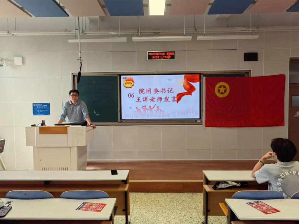 王洋老师作总结讲话。他对新时代青年马克思主义者提出四点要求:一是要坚定对共产主义和中国特色社会主义的执着信仰;二是要树立为实现中华民族伟大复兴的中国梦而奋斗的使命担当;三是要常葆对人民群众的赤子之心;四是要练就高强的本领。他号召同学们大力弘扬伟大建党精神,勿忘昨天的苦难辉煌,无愧今天的使命担当,不负明天的伟大梦想,以史为鉴、开创未来,埋头苦干、勇毅前行,为实现第二个百年奋斗目标、实现中华民族伟大复兴的中国梦而不懈奋斗。仪式最后,学员们齐唱中国共产主义青年团团歌。