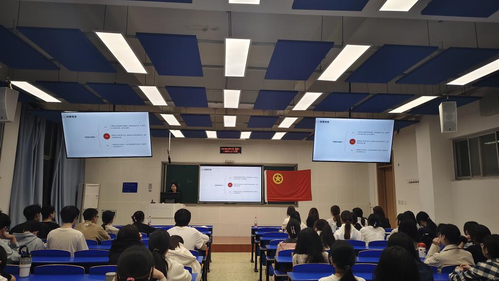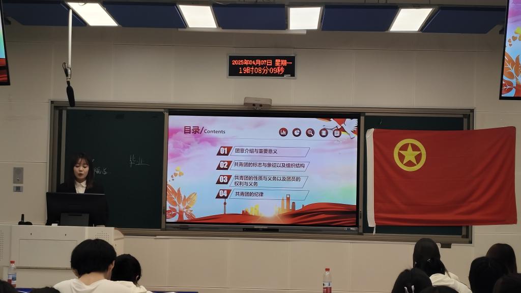 开班仪式结束后,主讲人文思琪紧扣“为党育人,为国育才”主线讲授第一课。她从团章的历史沿革、结构内容、重要意义等方面进行了详细解读。她指出,团章作为共青团的根本大法,明确规定了团的性质、任务、组织结构以及团员的权利与义务,是全体共青团员行动的纲领和准则。通过学习团章,团员青年能够更加深刻地理解共青团的历史使命和时代责任,进一步增强政治认同、思想认同和情感认同。