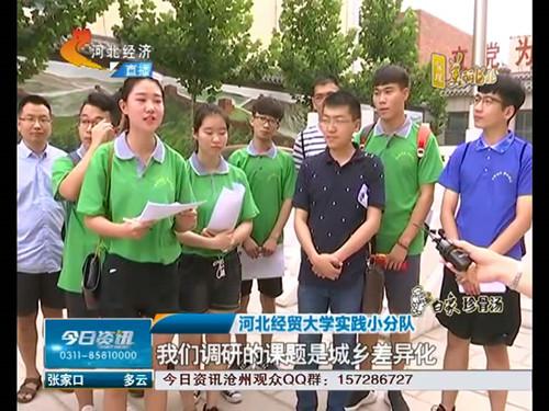 7月11日河北卫视经济频道播出的《今日资讯》栏目对数统公司赴宁晋社会实践小分队在贾家口镇小河庄村的“精准扶贫户识别”与“城乡老龄人口生活质量差异化研究”实践调研活动进行了报道。