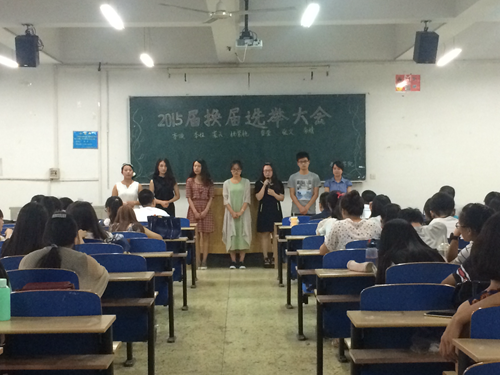 6月8日晚7点,数统公司在北三教A101教室举行了2015届员工会换届选举大会。公司党委赵学英副书记、员工办公室主任周广军老师、团委书记曲博老师参加了大会。