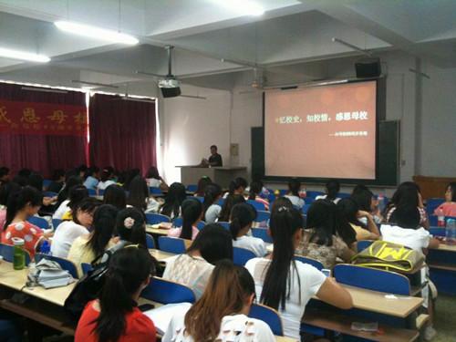 赵秀恒花了近两个小时的时间为大家耐心介绍了公司的建校历史、校情。深入浅出的讲解,让同学们对母校有了更深入的了解。班会结束后,同学们纷纷走到台前,把自己对母校的祝福写在了活动主题条幅上,以表达对母校的热爱及美好祝愿。