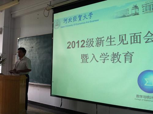金秋九月,丹桂飘香。9月10日下午,2012年新生见面会暨入学教育在公司C教310隆重举行。公司党总支书记赵秀恒教授,经理彭国富教授等院领导出席了见面会。数学与应用数学教研室主任王志军教授,信息与计算科学教研室主任王亚辉教授,统计学教研室主任张彩霞教授等教师代表应邀出席与新生见面。公司各职能部门负责人、辅导员以及2012级本科生全体新生参加见面会。开学典礼由党总支副书记赵春果主持。