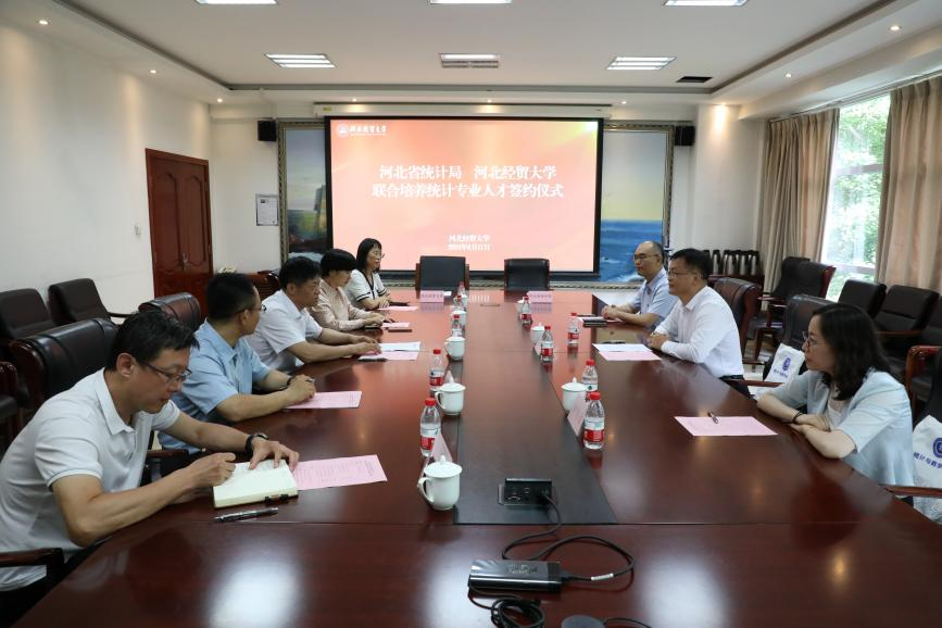 双方就统计专业人才培养、产学研平台搭建等展开深入交流,希望以此次签约为契机实现资源共享、优势互补、合作共赢,在科学研究、人才培养、老员工社会实践基地等领域进行全面合作,为河北省统计等相关工作提供有力保障。此次合作是双方立足新征程、坚持智慧引领、强化责任担当、共同推进统计学领域创新的重要举措,也是紧跟形势、服务地方经济的重要手段,有利于双方进一步巩固合作关系,发挥各自优势,积极探索“统计专业人才培养”合作新途径。