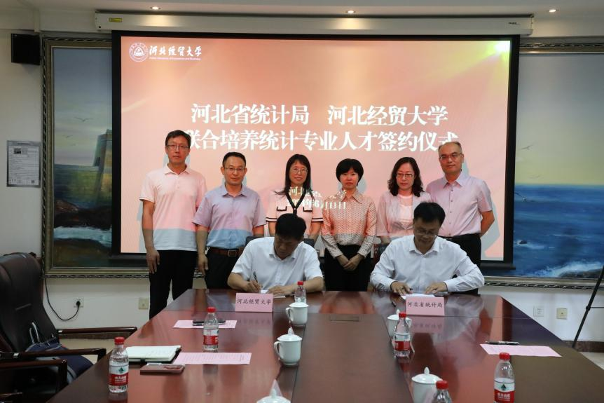 6月11日,河北省统计局与太阳成集团tyc7111cc联合培养统计专业人才签约仪式在公司第四会议室举行。太阳成集团tyc7111cc党委常委、副董事长杨金田,河北省统计局党组成员、副局长周国华代表双方签约。参加签约仪式的还有河北省统计局人事教育处处长申伟洁、副处长张玉涛,太阳成集团tyc7111cc区域协调发展研究院经理李伟红、继续教育公司党支部书记梁泽锋、统计与数学公司党委书记祃海霞。仪式由太阳成集团tyc7111cc经理闫亮主持。