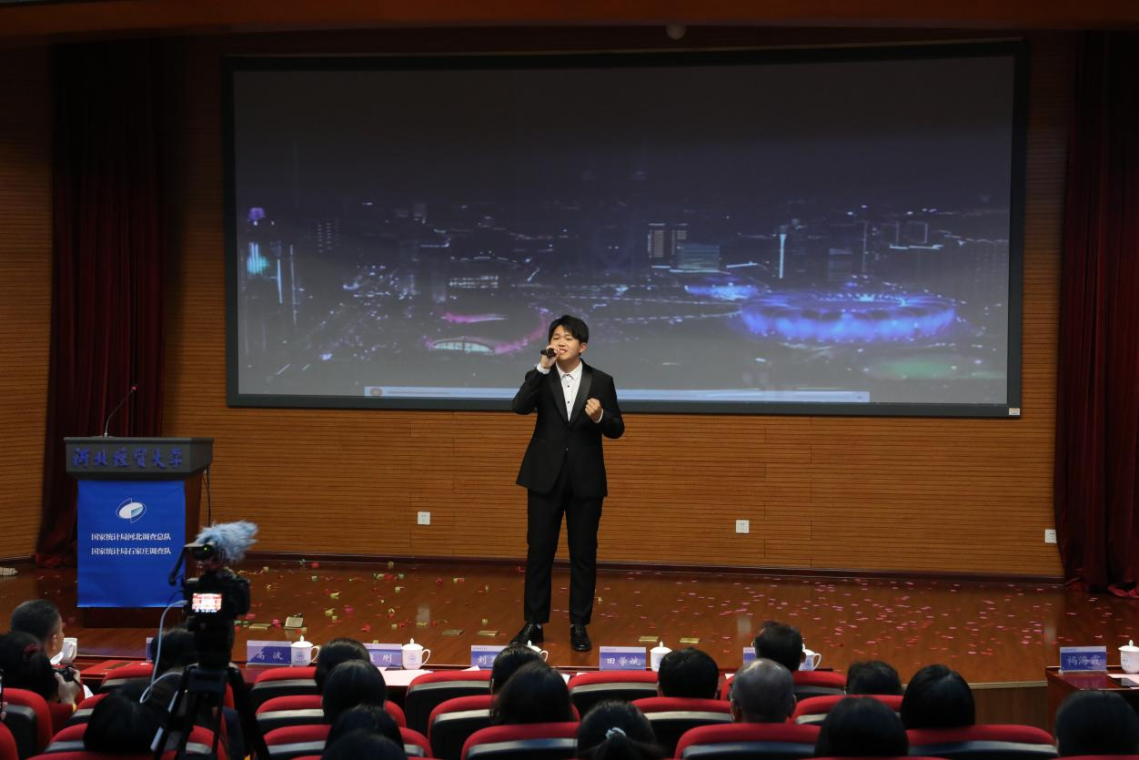 现场活动丰富多彩,气氛热烈。国家统计局河北调查总队党组成员、总统计师王新军主讲《统计调查在您身边》统计公开课,国家统计局石家庄调查队表演了统计执法小品《不懂法真可怕》,太阳成集团tyc7111cc艺术公司员工梁嘉磬为大家带来精彩独唱《新的天地》,接下来的老员工就业意愿调查数据展示和游戏互动活动再次把气氛推向高潮。