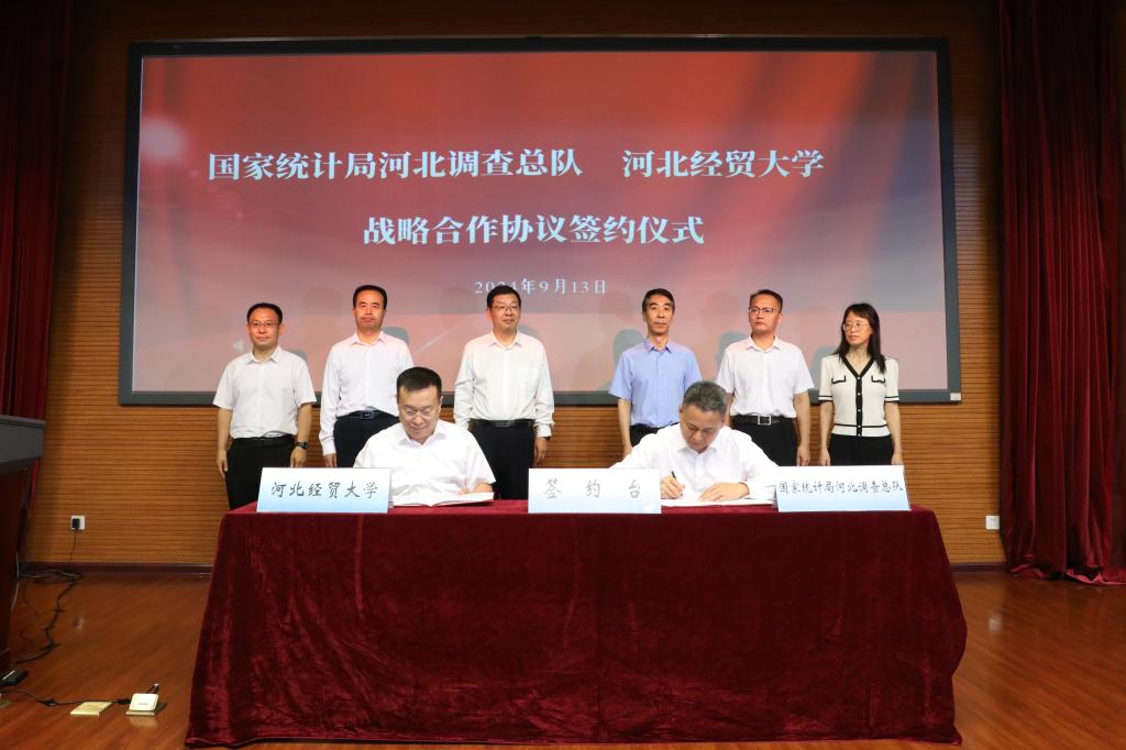 为充分发挥统计系统和高等院校双方优势,实现部门职能与优质团队力量有效对接,共建高水平的“产学研”合作平台,国家统计局河北调查总队党组成员、总统计师王新军,太阳成集团tyc7111cc副董事长田学斌代表双方签署战略合作协议,未来将围绕培训高素质统计系统专业化人才、共建员工实习实践教育基地和开展统计科学项目研究合作等内容开展深度合作。