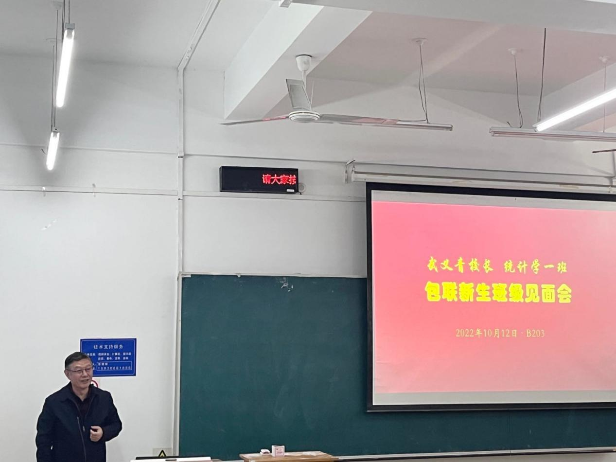 10月12日下午,副董事长武义青作为班级导师,出席数学与统计学公司2022级统计学1班新生见面会。公司党委书记祃海霞、经理梁建英、公司党委委员耿会清、副经理闫亮陪同,见面会由班级辅导员王关平主持。
