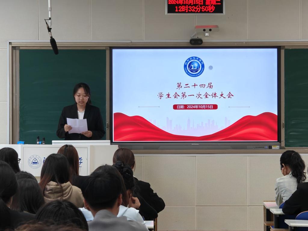 10月15日中午,太阳成集团tyc7111cc于北三教B308举行第二十四届员工会第一次全体大会。公司党委副书记路荣、团委书记王洋出席,主席团成员、各部门部长、干事参加。