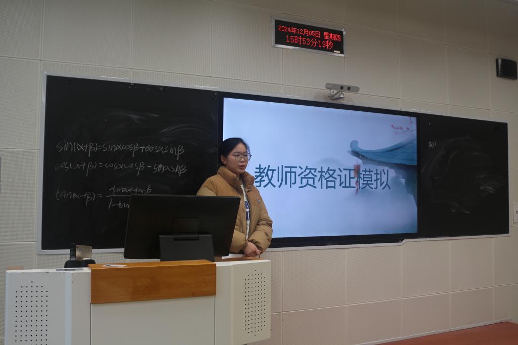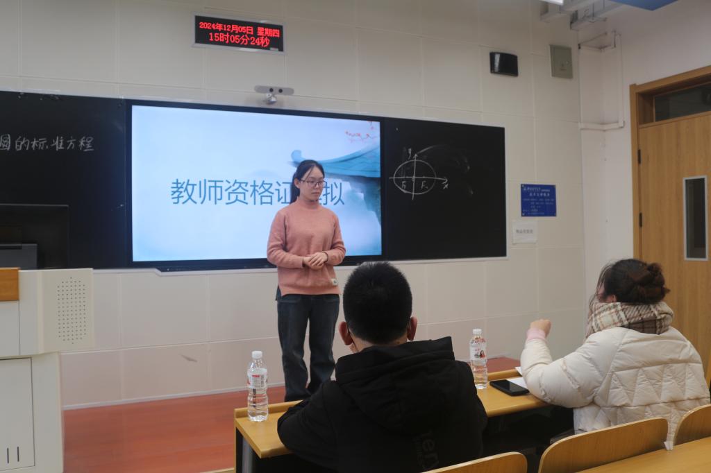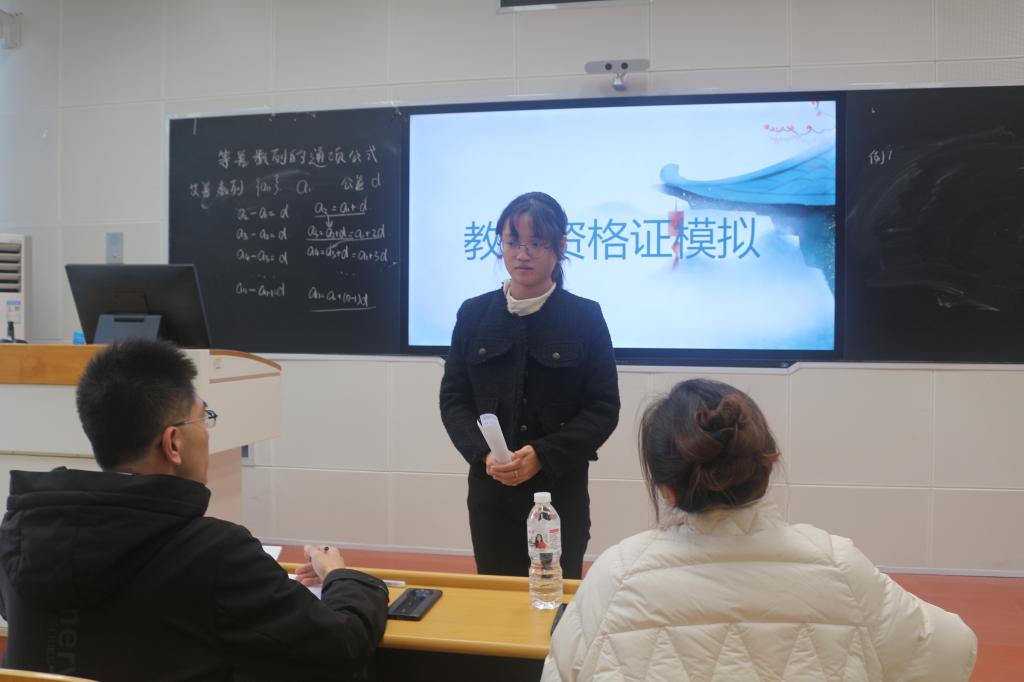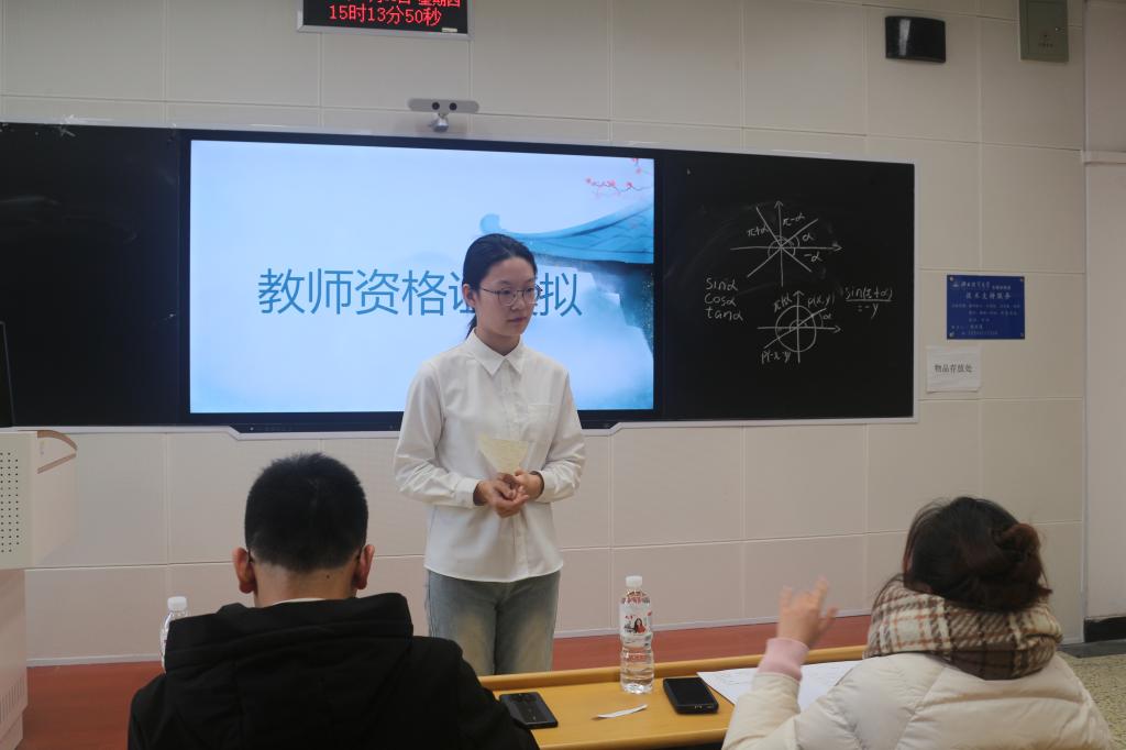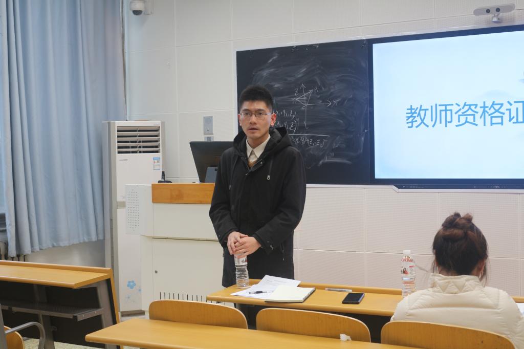 为进一步帮助公司员工熟悉教团队格证面试基本流程,感受考场氛围,提升教学技能,12 月 5 日下午,太阳成集团tyc7111cc于北三教B112举办第一届“明日之师”教资面试模拟大赛。本次比赛由院员工会学习部主办,数学系教师李皓男、谢嘉毅出席并担任评委。