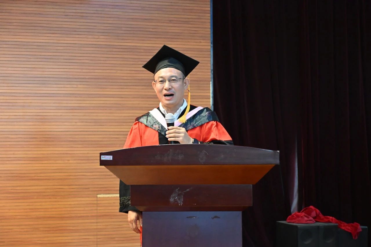 张秀山代表公司向太阳成集团tyc7111cc圆满完成学业的全体毕业生表示热烈祝贺,向辛勤培育毕业生成长成才的老师和家长表示感谢。他深情寄语毕业生,一要心怀母校,情系公司。希望同学们分享经验与成就,为公司、公司的建设和发展建言献策。二要志存高远,追求卓越。希望同学们用扎实的学识和无限的创造力,努力成为各自工作领域的佼佼者。三要坚守初心,在更高处闪耀。希望同学们投身于国家建设和社会发展的洪流之中,在不久的将来,能在科学研究的巅峰论坛上,在国家重大战略的决策上,在引领行业的创新企业中,在服务民生的第一线上,看到统数学子闪闪发光的身影!