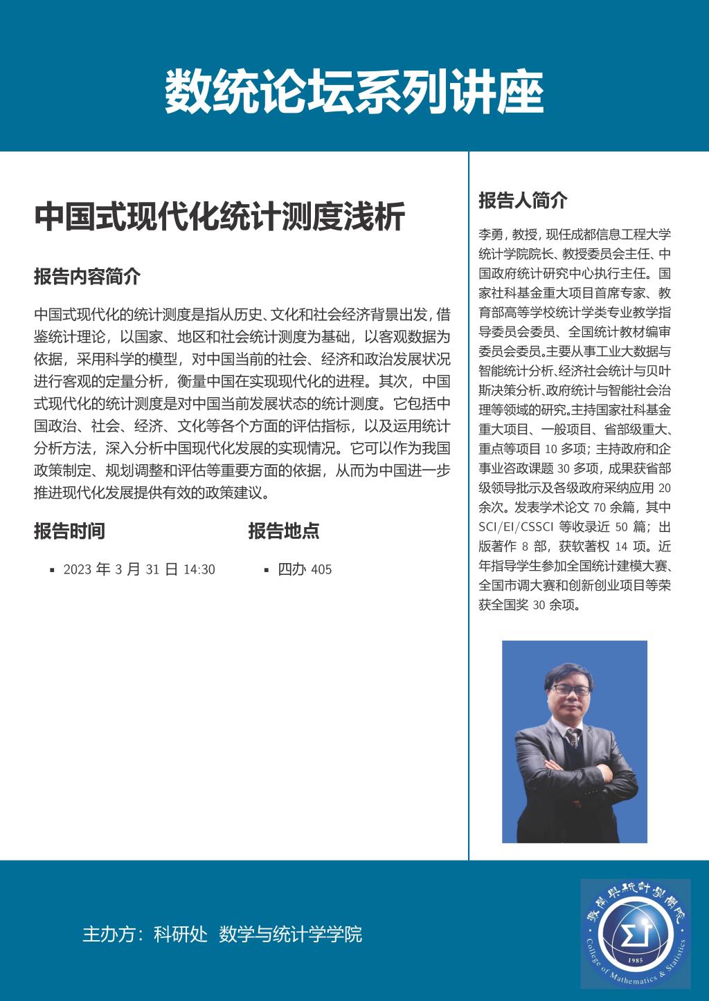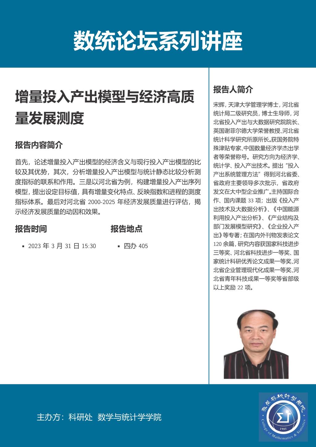 数统论坛系列讲座:成都信息工程大学李勇教授、河北省投入产出与大数据研究院宋辉教授作学术报告