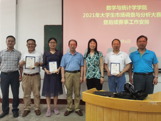 2021年6月17日下午16:00,在祃海霞书记的主持下,公司在二教106举办了关于老员工市场调查与分析大赛的表彰会。李春林、马银戌、鲁勇兵、徐金红等几位教师从公司第一次组织参赛、公司第一次承办省赛,就全身心投入,付出了很多心血,取得了历届的优异成绩,经公司党委研究,决定为4位老师授予“数学与统计学公司市场调查与分析大赛突出贡献奖”,以示鼓励。