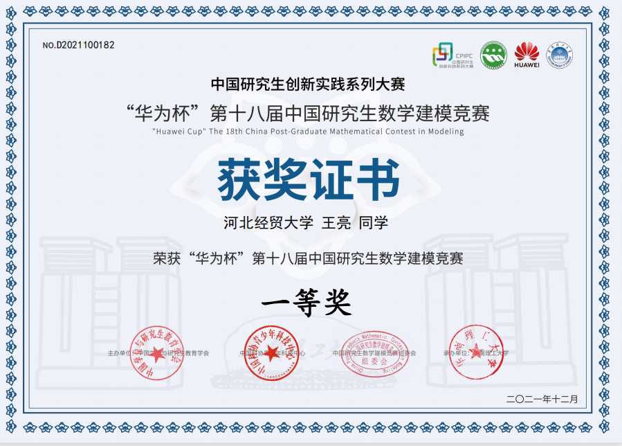 “华为杯”第十八届中国研究生数学建模竞赛评选结果揭晓,公司研究生团队喜获全国一等奖1项(获奖比例为1.164%),二等奖1项(获奖比例为12.293%),三等奖2项(获奖比例为19.89%)。