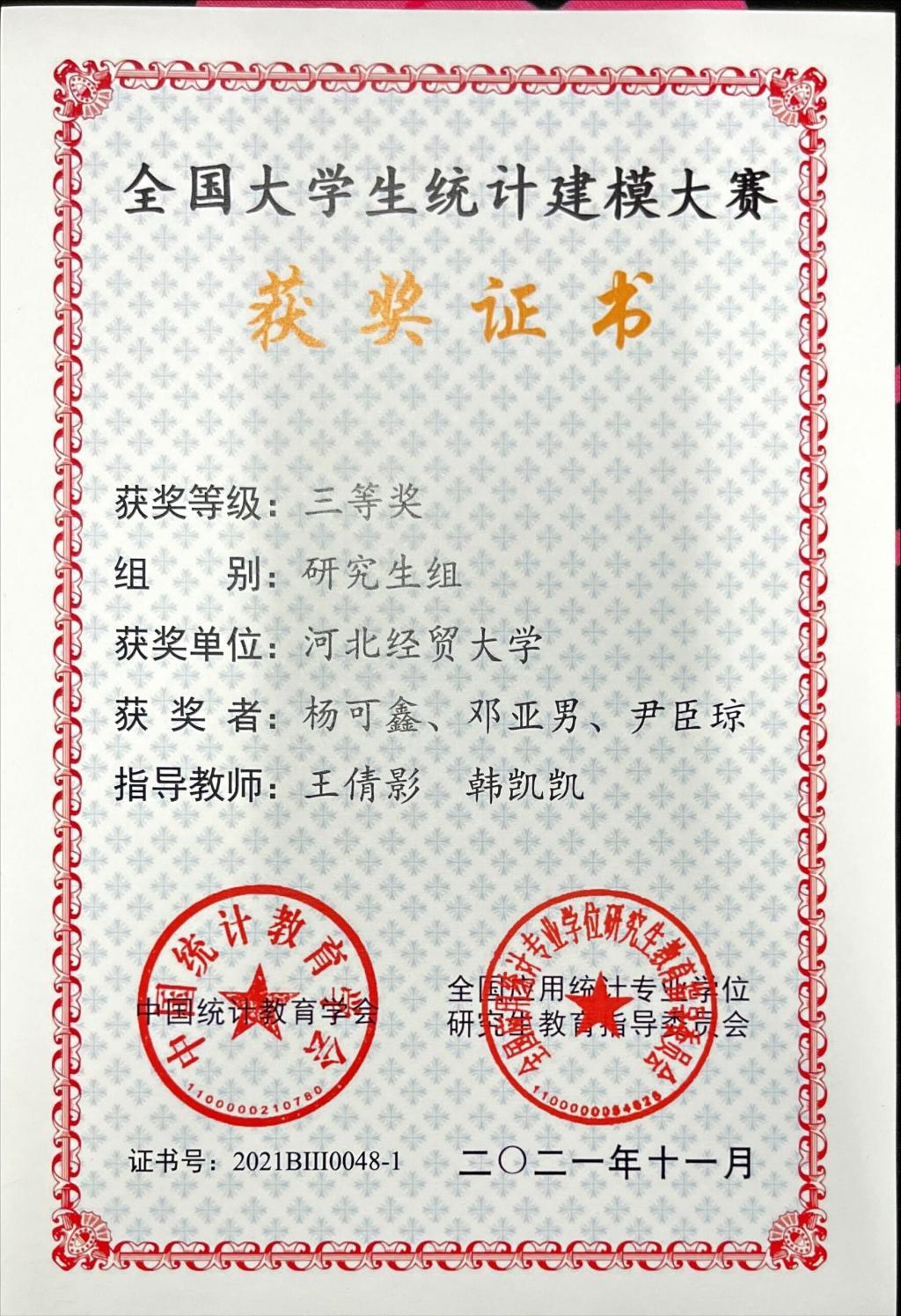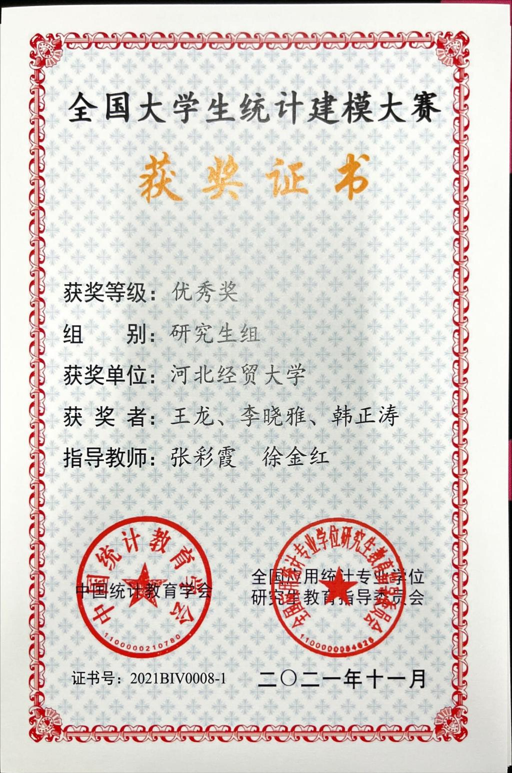 公司研究生在2021(第七届)全国老员工统计建模大赛中获得佳绩