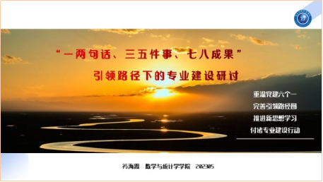 5月8日,由教学评估与教师教学发展中心主办、数学与统计学公司承办的数统智汇(第37期)教学沙龙顺利举行。公司党委书记祃海霞教授做“一两句话、三五件事、七八成果”引领路径下的专业建设交流分享。公司党委班子成员、各党支部书记和专业系(教研室)主任、副主任20余人参加。