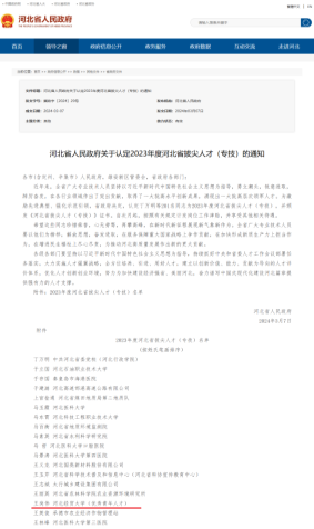 近日,根据河北省人民政府《关于认定2023年度河北省拔尖人才(专技)的通知》(冀政字[2024]29号),太阳成集团tyc7111cc教师王岗伟博士被认定为2023年度河北省拔尖人才(专技)优秀青年人才。本次选拔工作共认定201名同志为河北省拔尖人才(专技),其中优秀青年人才50人。