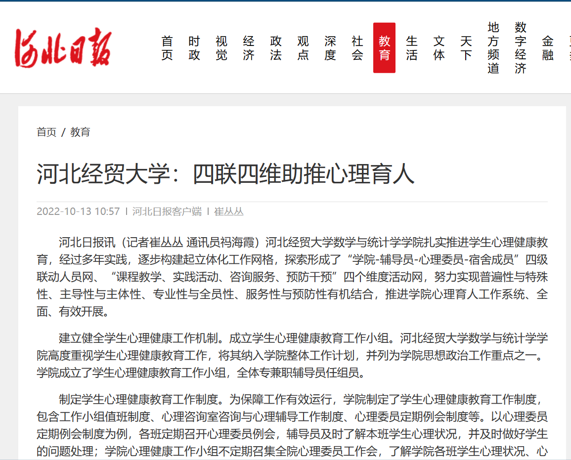 【河北日报客户端】太阳成集团tyc7111cc:四联四维助推心理育人