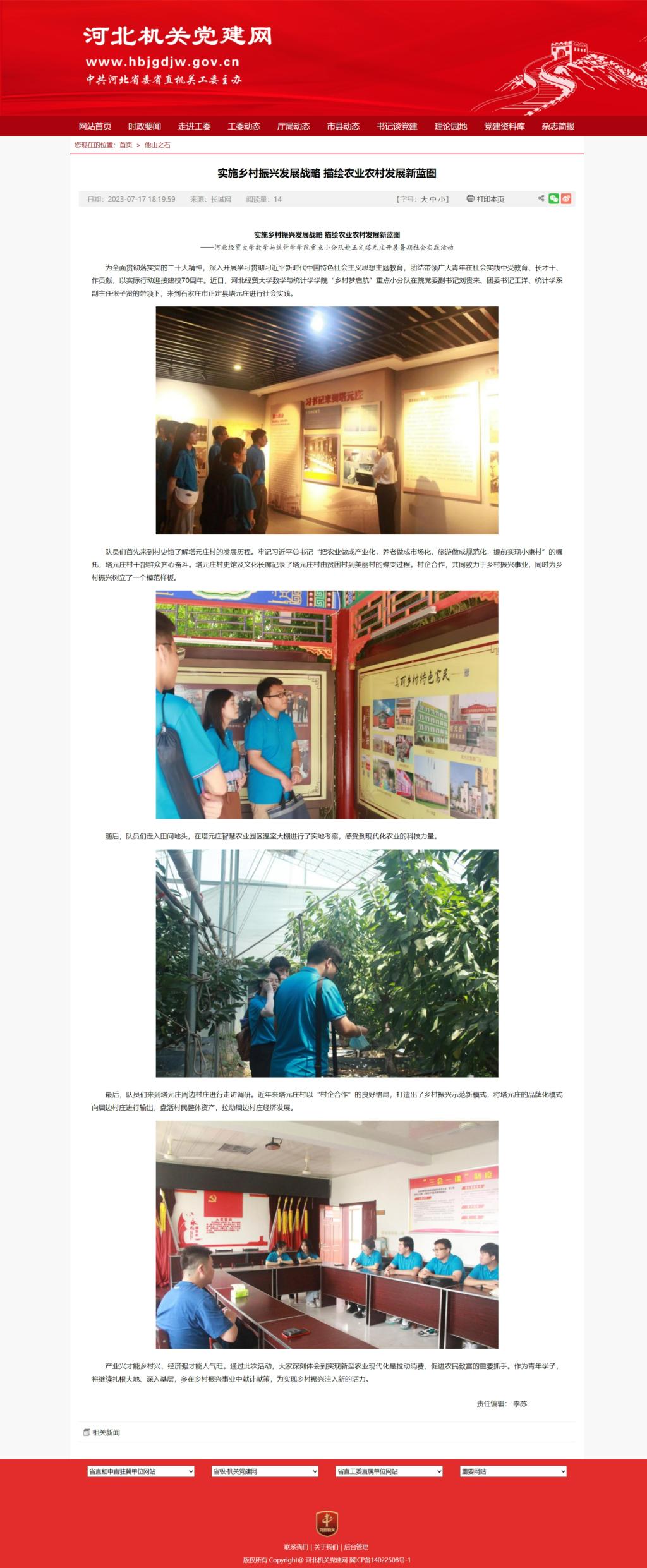 【河北机关党建网】实施乡村振兴发展战略 描绘农业农村发展新蓝图 ——太阳成集团tyc7111cc重点小分队赴正定塔元庄开展暑期社会实践活动
