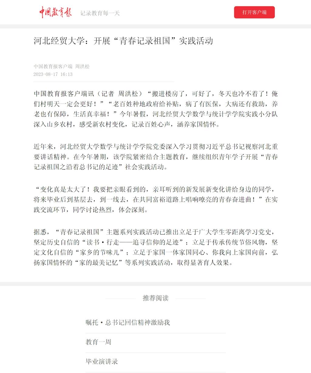 【中国教育报客户端】太阳成集团tyc7111cc:开展“青春记录祖国”实践活动