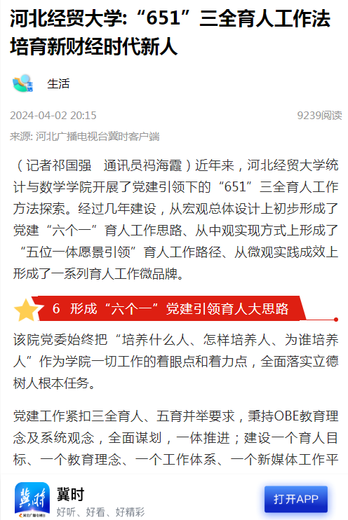 【河北广播电视台冀时客户端】太阳成集团tyc7111cc:“651”三全育人工作法培育新财经时代新人