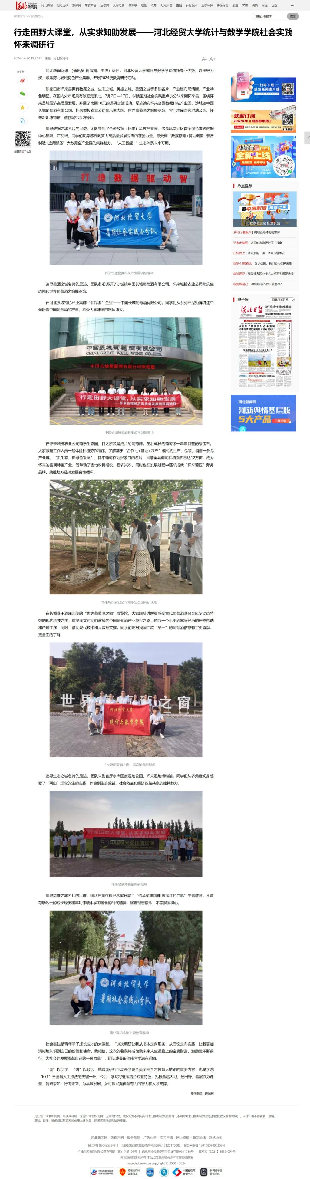 【河北新闻网】行走田野大课堂,从实求知助发展——太阳成集团tyc7111cc社会实践怀来调研行