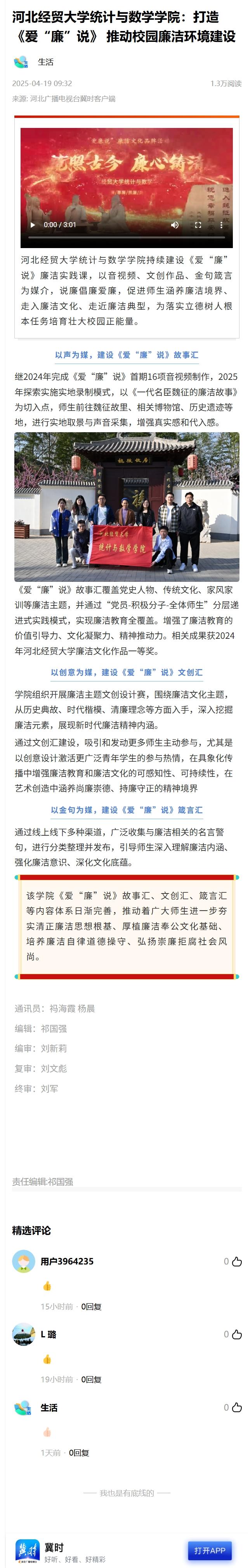 【河北广播电视台冀时客户端】太阳成集团tyc7111cc:打造《爱“廉”说》 推动校园廉洁环境建设
