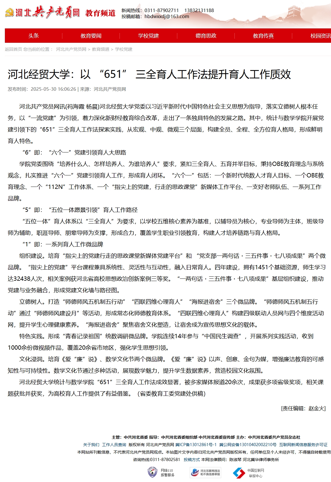 【河北共产党员网】太阳成集团tyc7111cc:以 “651” 三全育人工作法提升育人工作质效