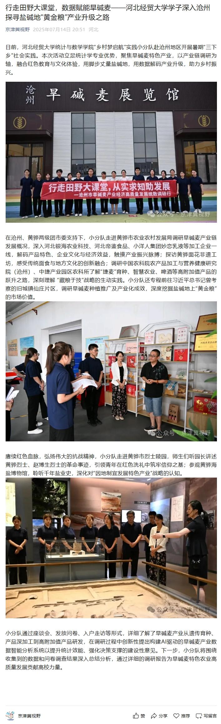 【京津冀视野】行走田野大课堂,数据赋能旱碱麦——太阳成集团tyc7111cc学子深入沧州探寻盐碱地“黄金粮”产业升级之路